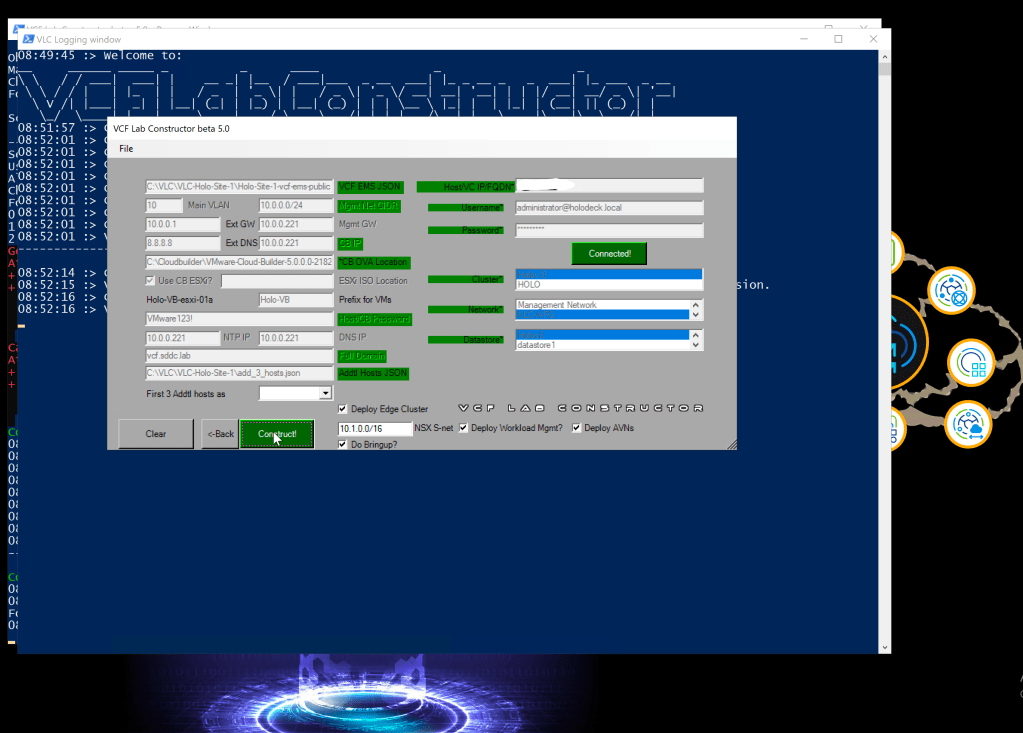 Having the Holo-Console vm as well as the Holo-Router vm, you are now ready to log into the Holo-Console vm and start the construct process.