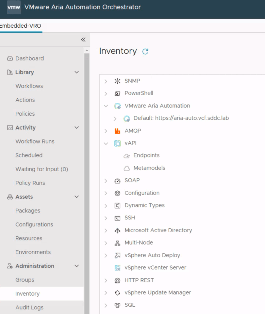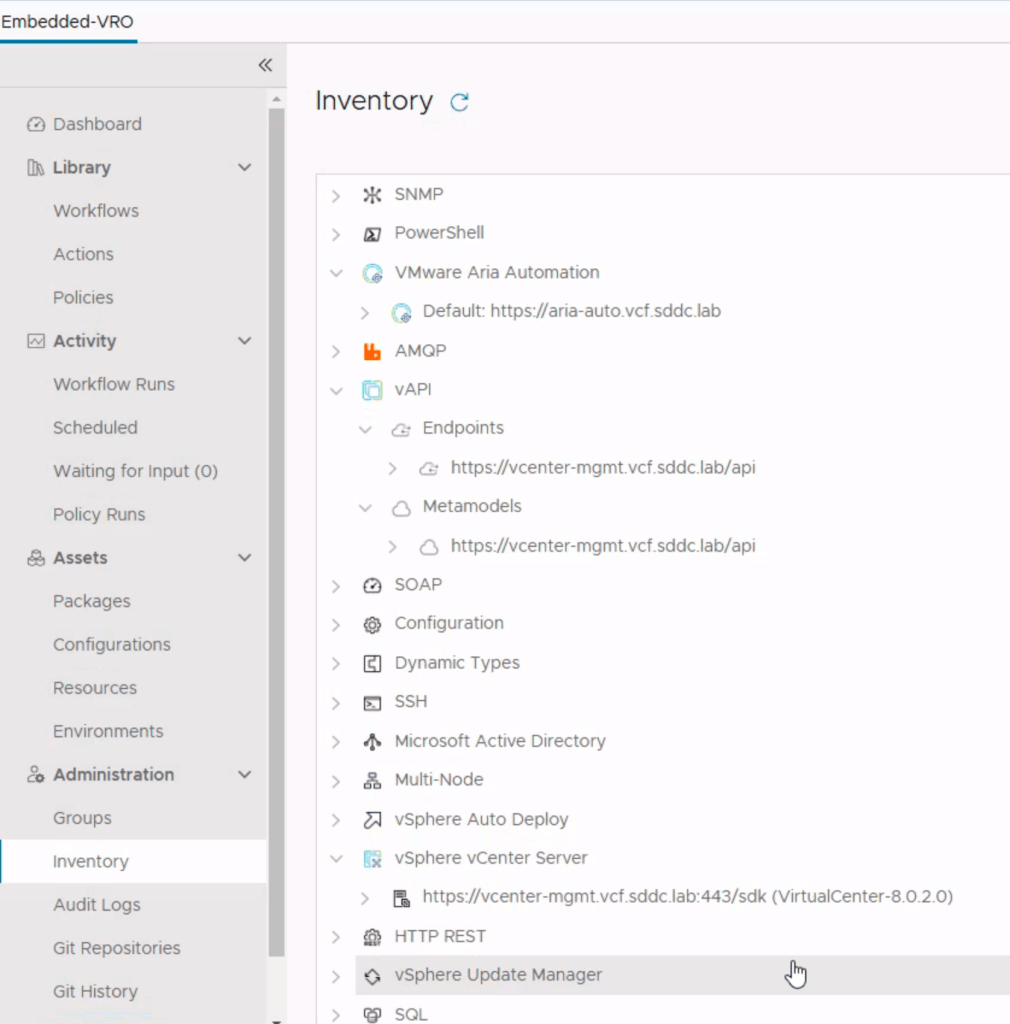 Check your inventory, and verify vAPI and vSphere vCenter Server.