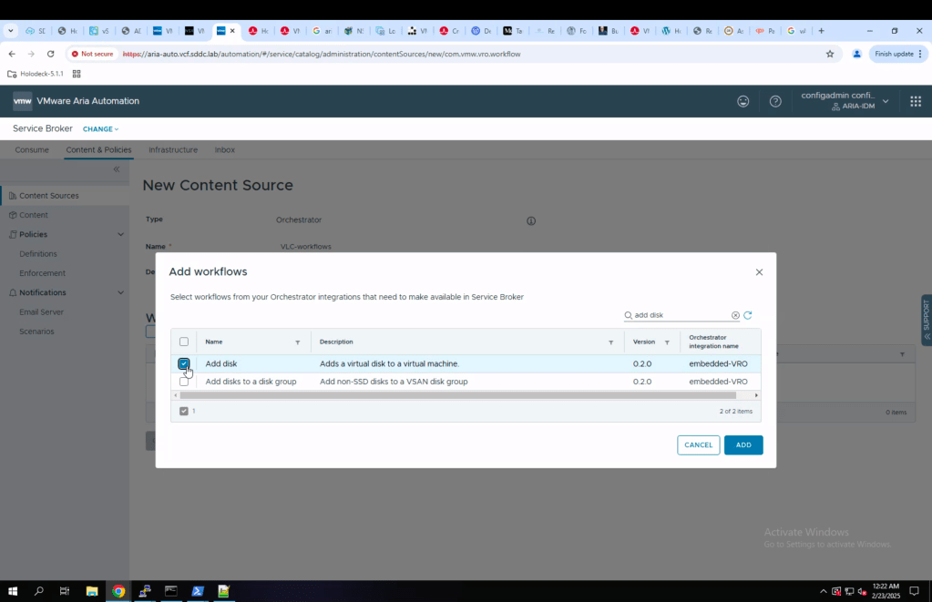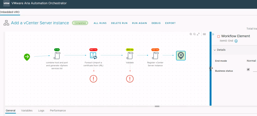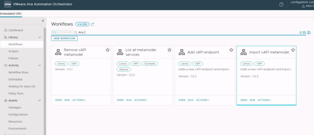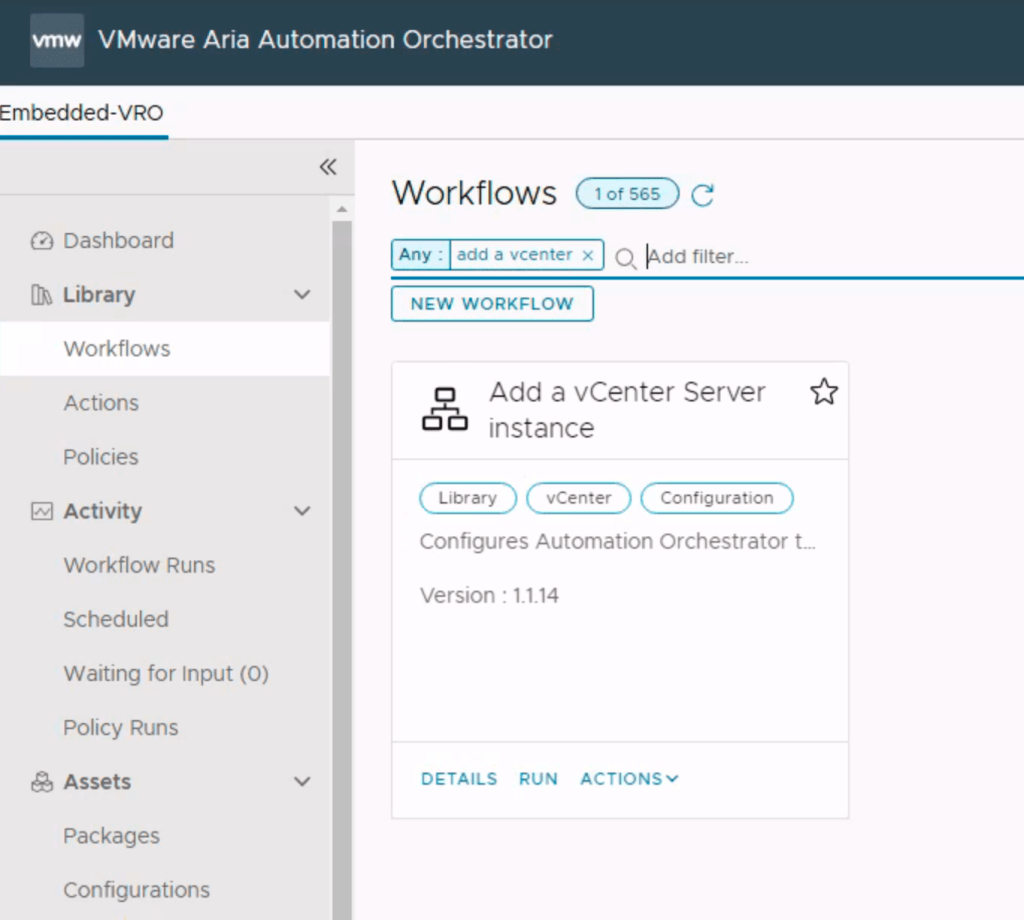 Next up is the vCenter, so we search in workflows for add vCenter instance