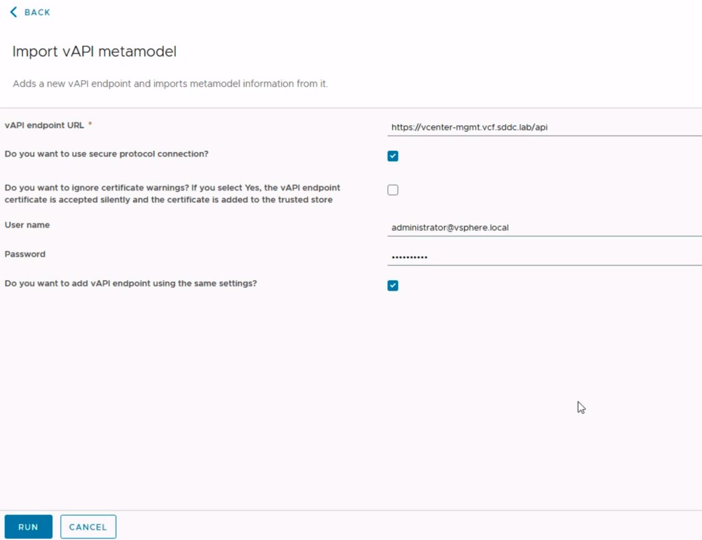 we will run import vAPI metamodel, because this adds endpoint at the same time.