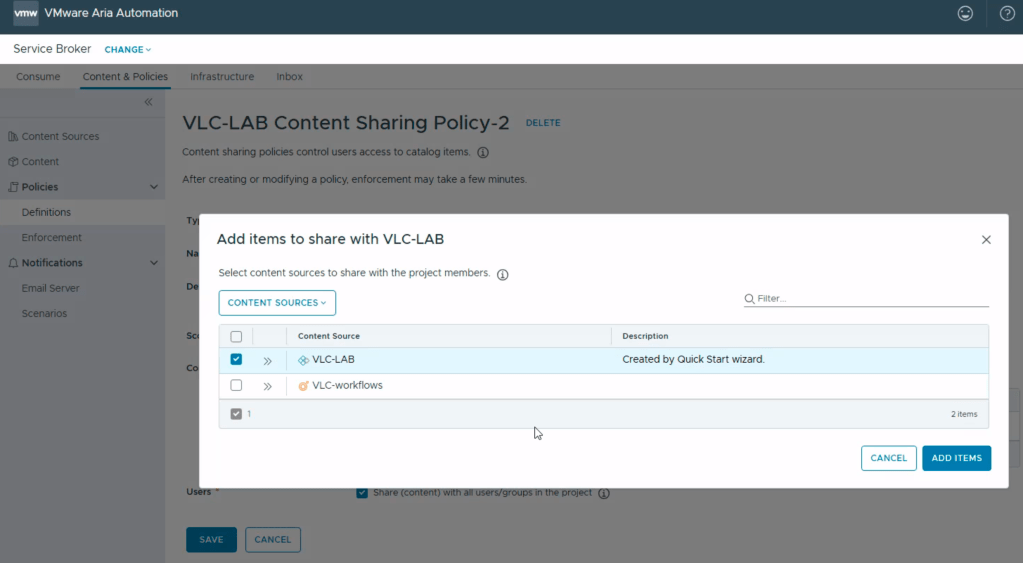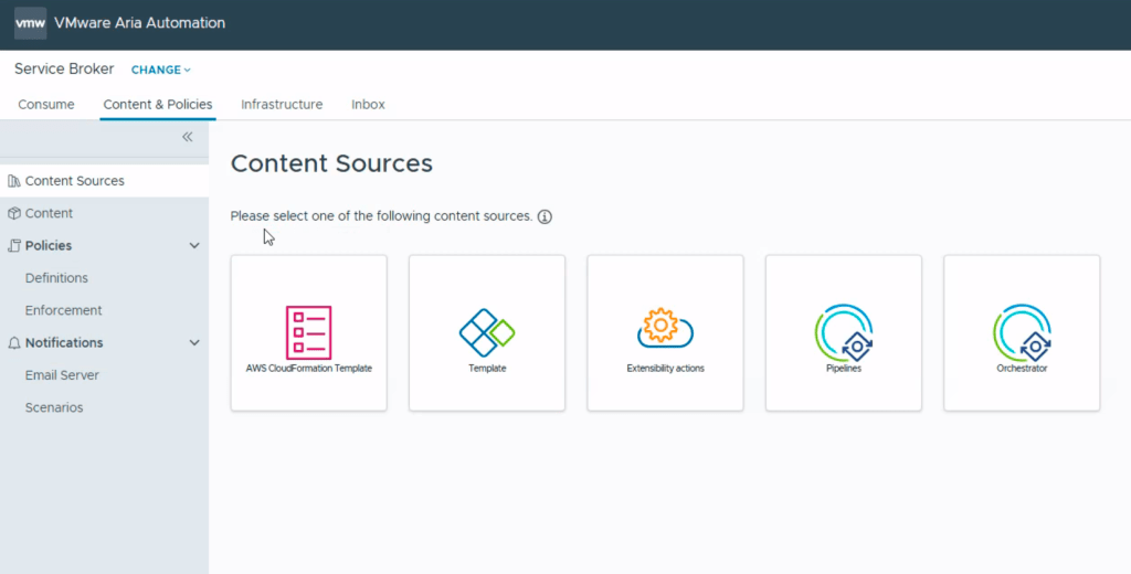 Go to service broker, choose content sources, and add new, add orchestrator source.