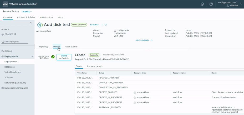 Watch your deployment, it completes, and you are ready to log in to your vm and partition your disk.
