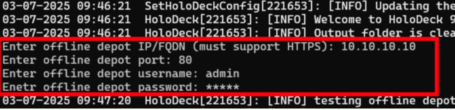 - The info for the offline depot VM