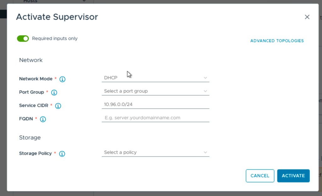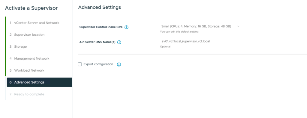Last config is the size of the Supervisor vms and the fqdn for the API server.