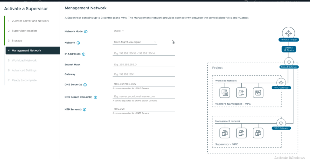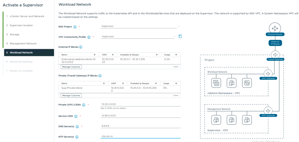 To do this i had some pre-requisites and some options. What network to use, meaning VPC, NSX or VDS.