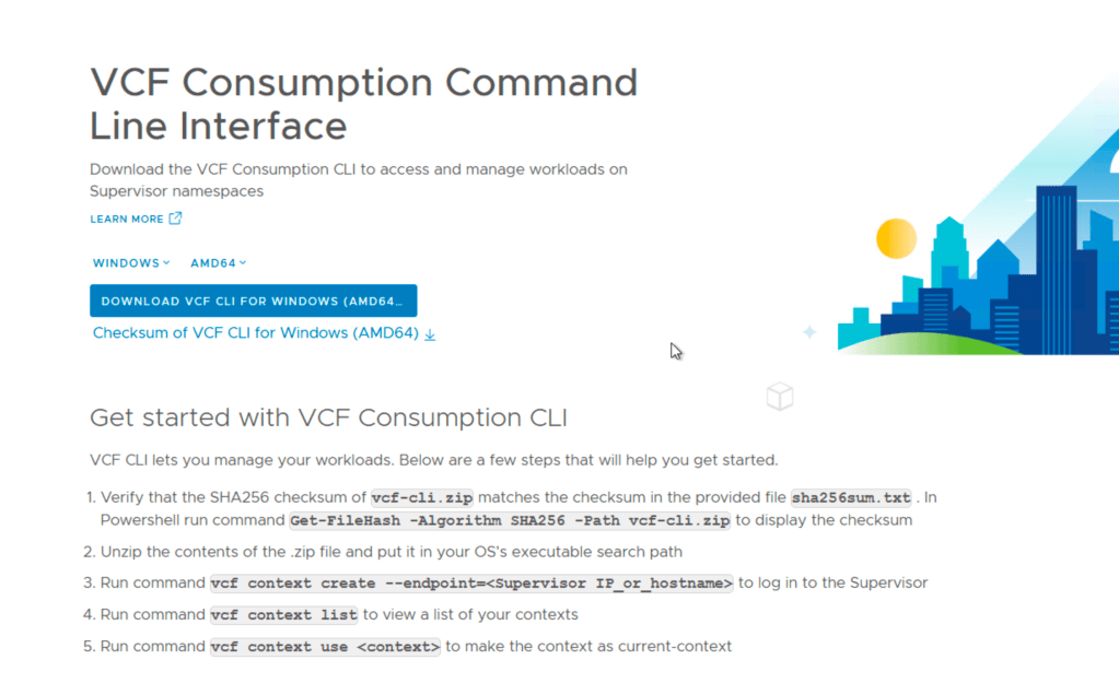 It should give you this page for downloading the vcf-cli.