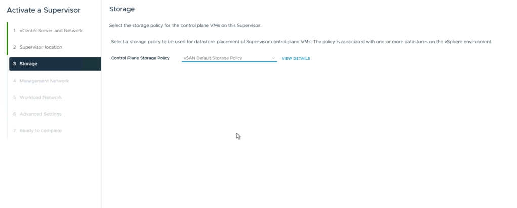 For storage i chose the default vsan storage policy wich is R1. If you in your environment need more redundancy, pick a more redundant policy like R5, R6 or mirror if you have a stretch cluster.