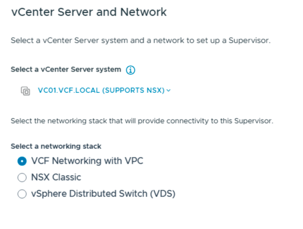 After installing VCF 9.0 it was time to setup the Supervisor cluster. This would give me VKS, vSphere Kubernets Service, what we earlier called Tanzu.