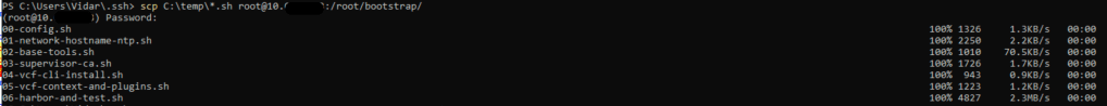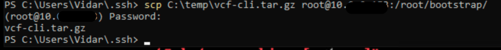 Now i can copy the vcf-cli tar file with scp to /root/bootstrap with powershell